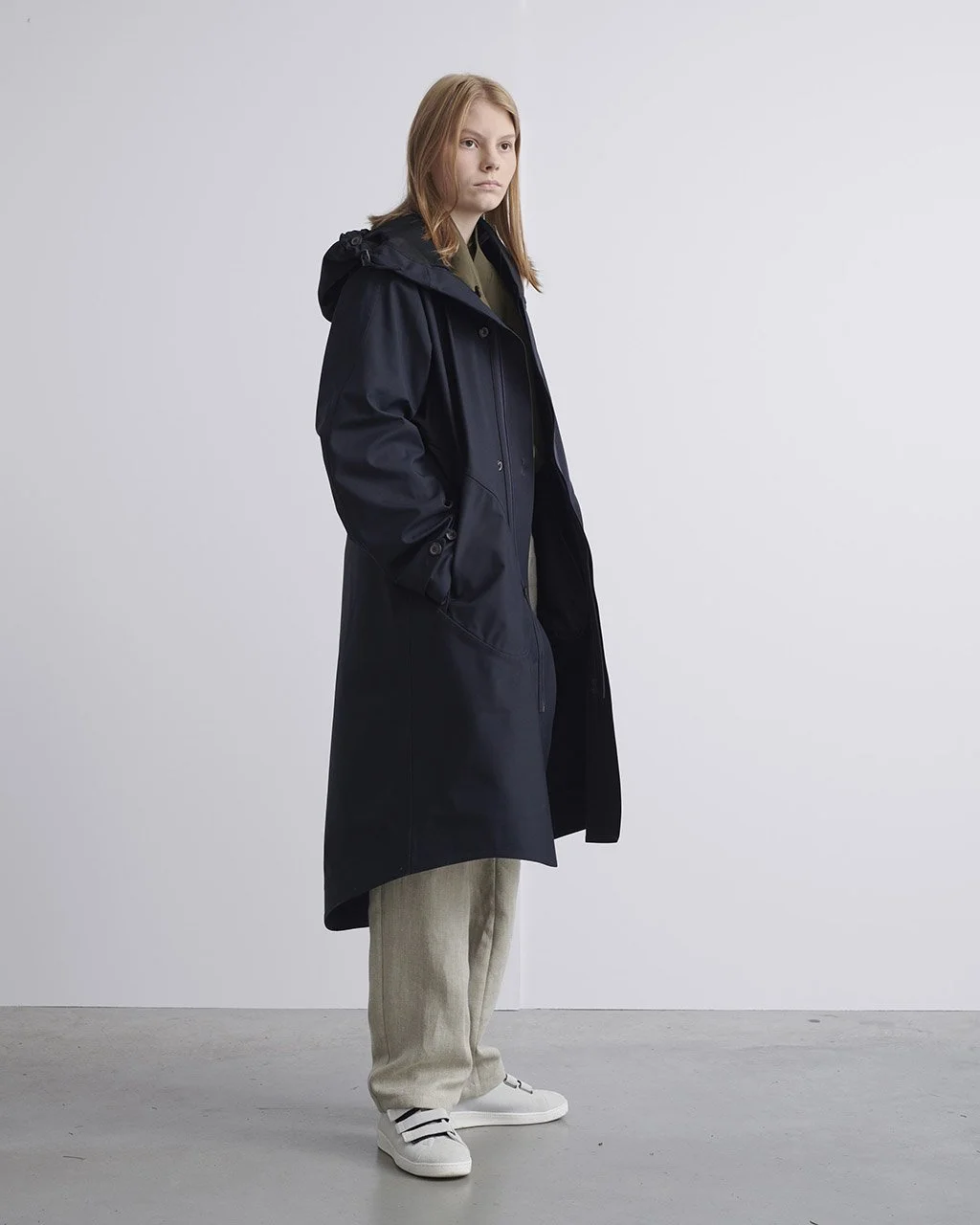 The seam that runs over the shoulder and arm plays a major role in the jacket's perfect organic shape. But details such as the front pocket or the slightly rounded length are also part of this special type of design. Overall, this creates a shape that is beautiful and connects perfectly with people.