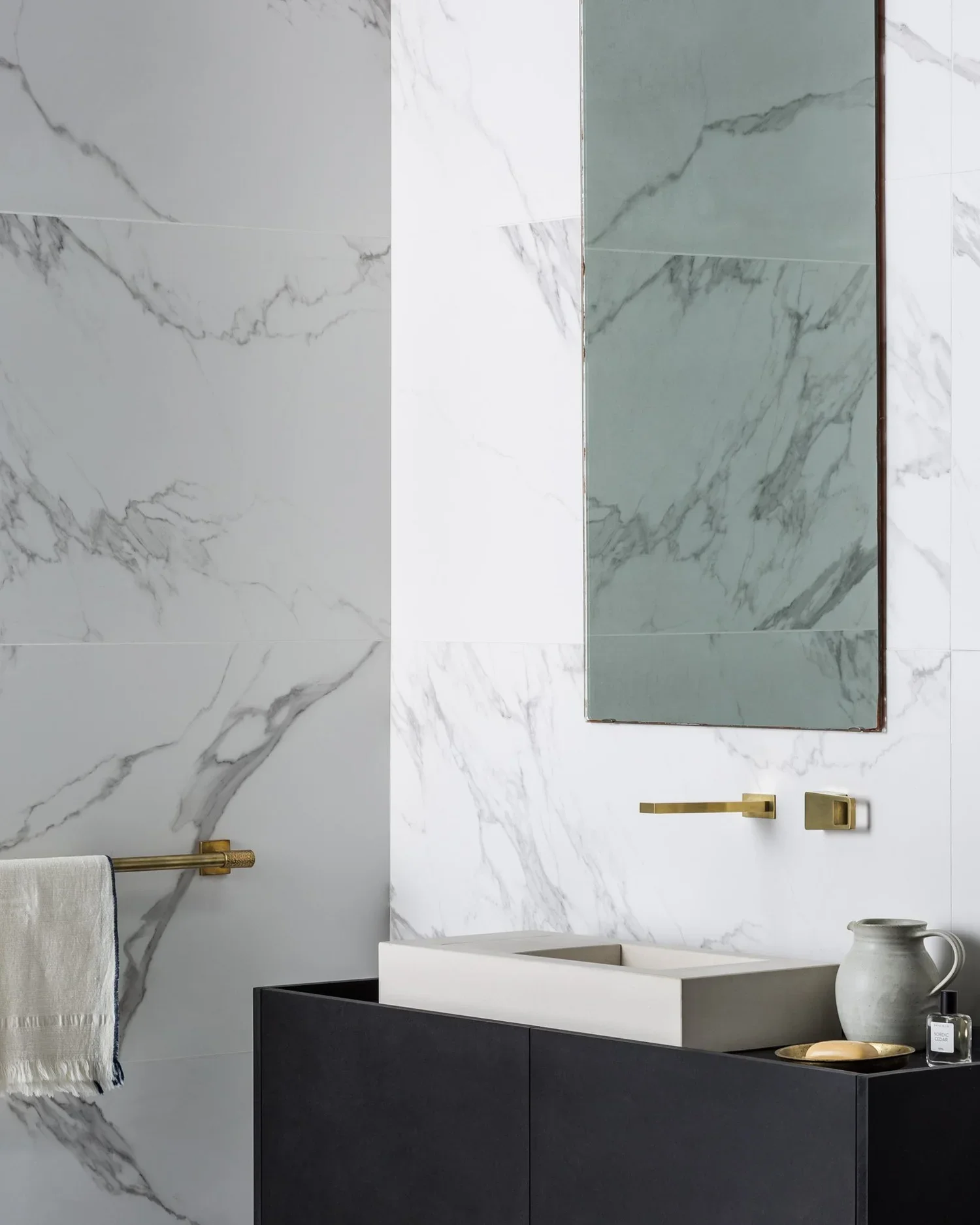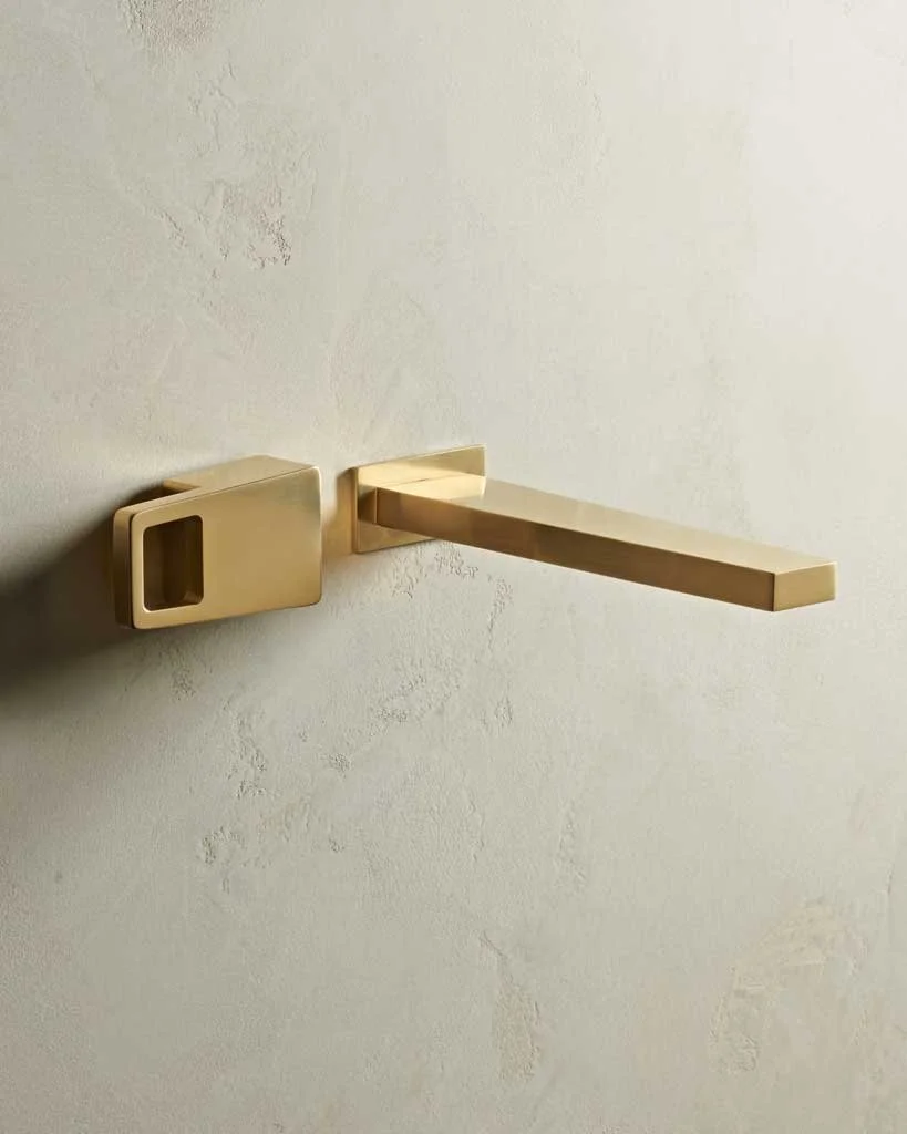 エッジのタイトなラインは、幾何学的、男性的な印象ですが、このシリーズの滝のような吐水口は、スパにふさわしいオプションでもあります。タイトなラインを美しく見せるには、ポリッシュド・クロームやポリッシュド・ブラスなど、端正で洗練された仕上げをお勧めします。